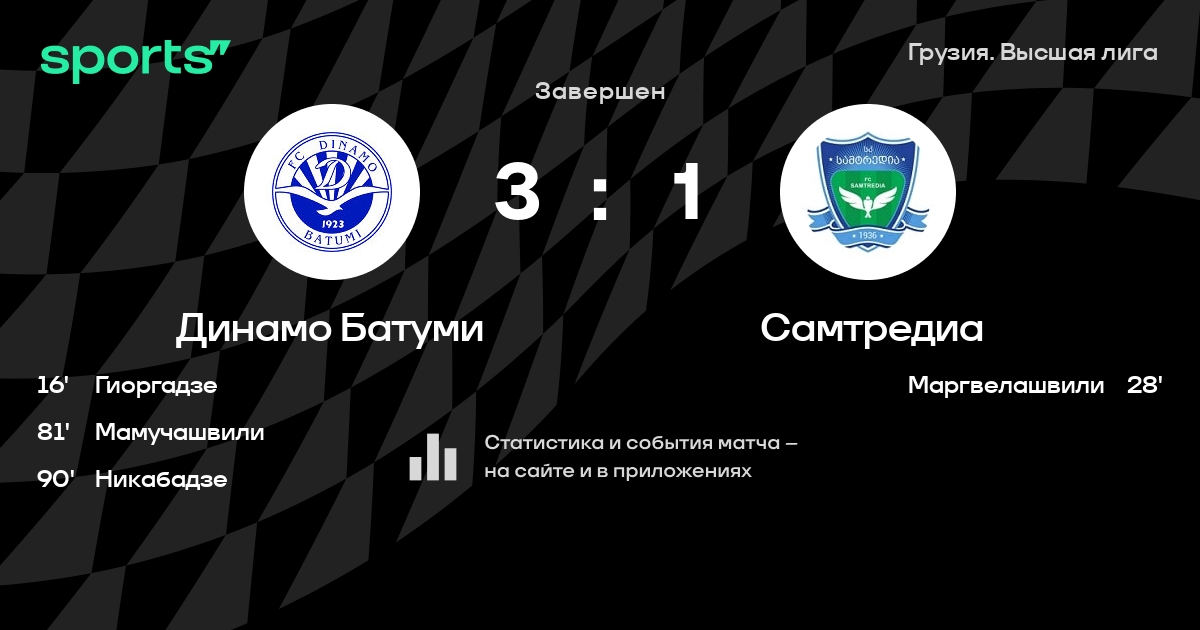Динамо Батуми – Самтредиа: Динамо Батуми побеждает в 4 последних очных матчах