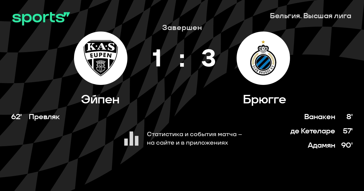 Эйпен – Брюгге: Брюгге не проигрывает в 9 последних матчах против этого соперника