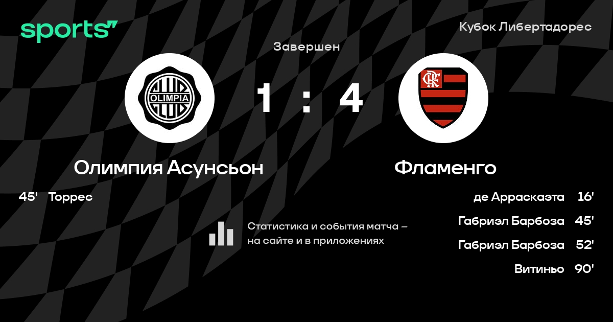 Олимпия Асунсьон – Фламенго: Олимпия Асунсьон забивает в 3 последних матчах против этого соперника