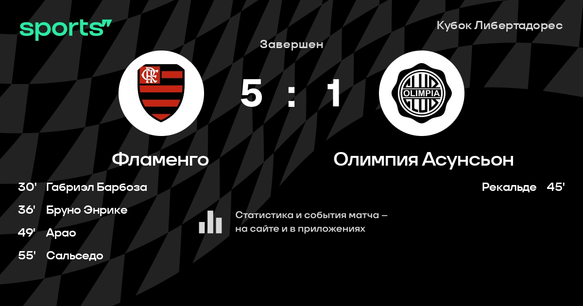 Фламенго – Олимпия Асунсьон: Олимпия Асунсьон забивает в 4 последних матчах против этого соперника