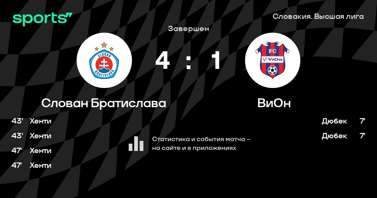 Слован Братислава – ВиОн: Слован Братислава побеждает в 3 последних очных матчах