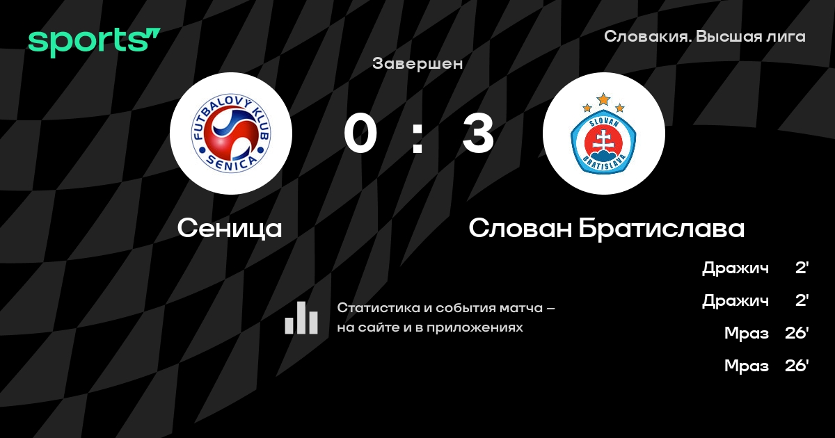 Сеница – Слован Братислава: Слован Братислава не пропускает в 0 из 7 последних матчей против этого соперника