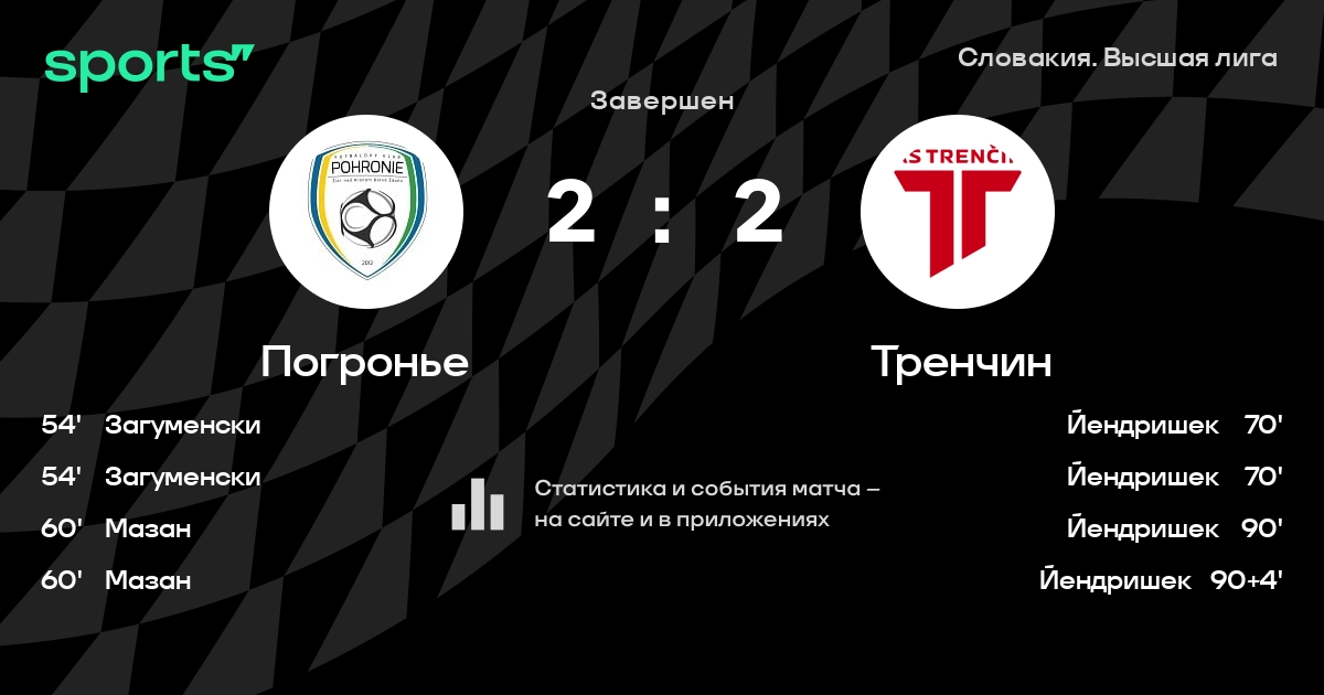 Погронье проигрывает в 4 последних матчах в турнире «Словакия. Высшая лига»