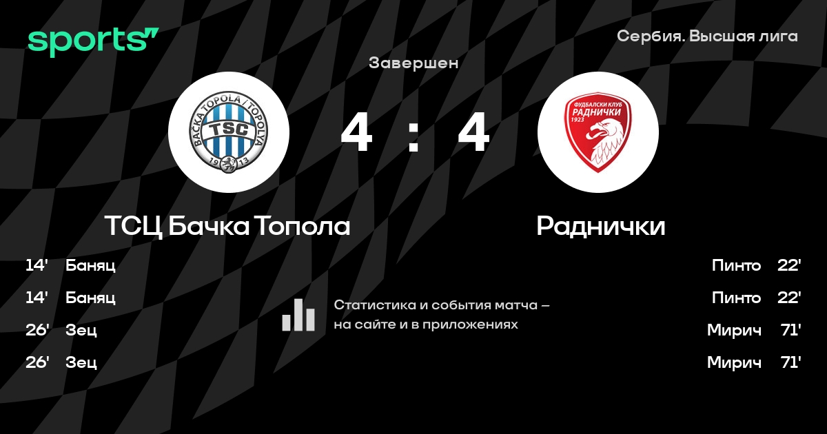 Бачка Топола – Раднички: Бачка Топола забивает в 5 последних матчах против этого соперника