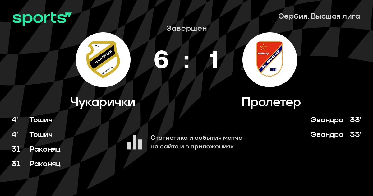 Чукарички – Пролетер: Чукарички не проигрывает в 5 из 7 последних матчей против этого соперника дома