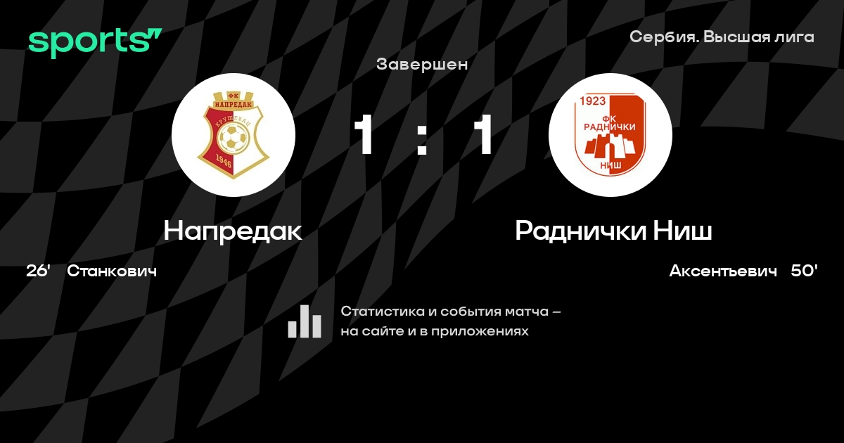 Напредак – Раднички Ниш: Раднички Ниш не проигрывает в 8 из 10 последних матчей против этого соперника