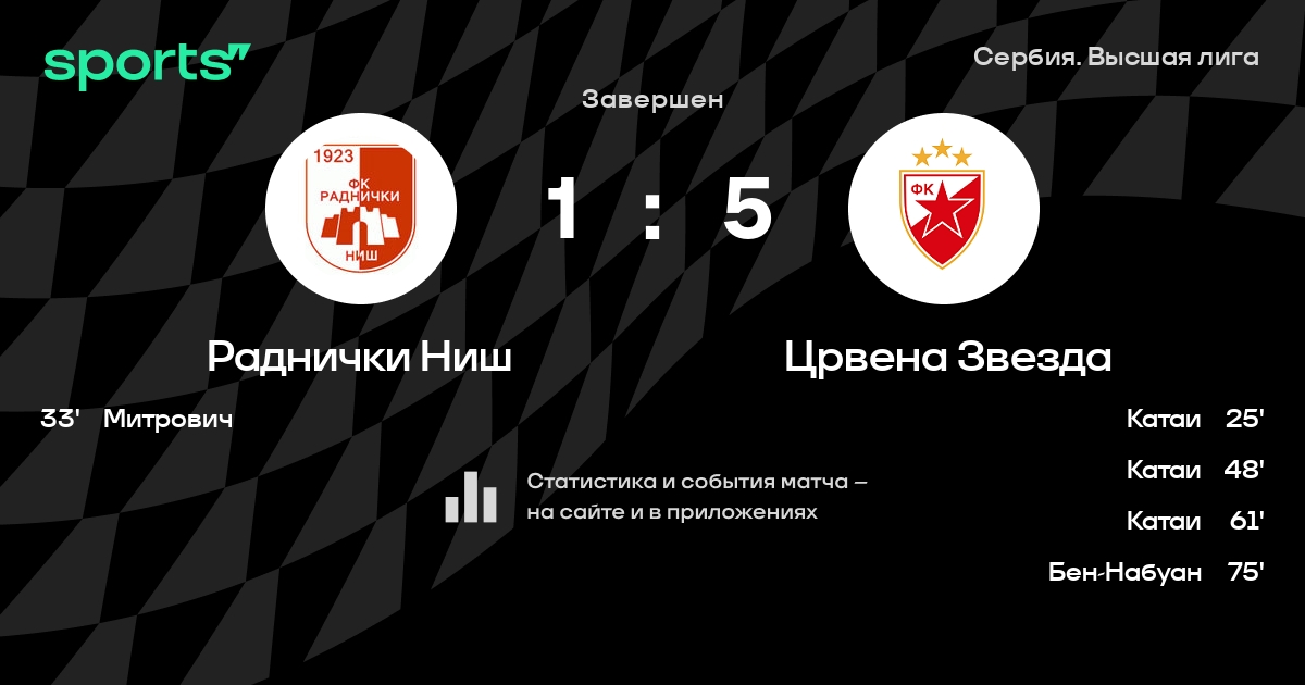 Раднички Ниш – Црвена Звезда: Црвена Звезда забивает в 17 из 19 последних матчей против этого соперника
