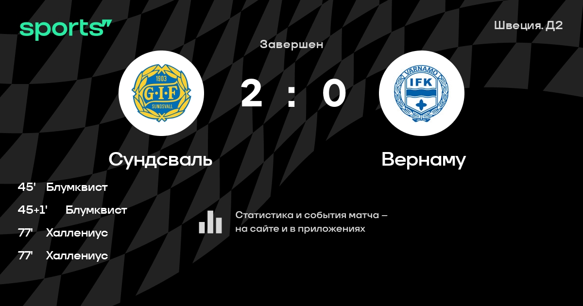 Сундсваль – Вернаму: Вернаму забивает в 4 последних матчах против этого соперника