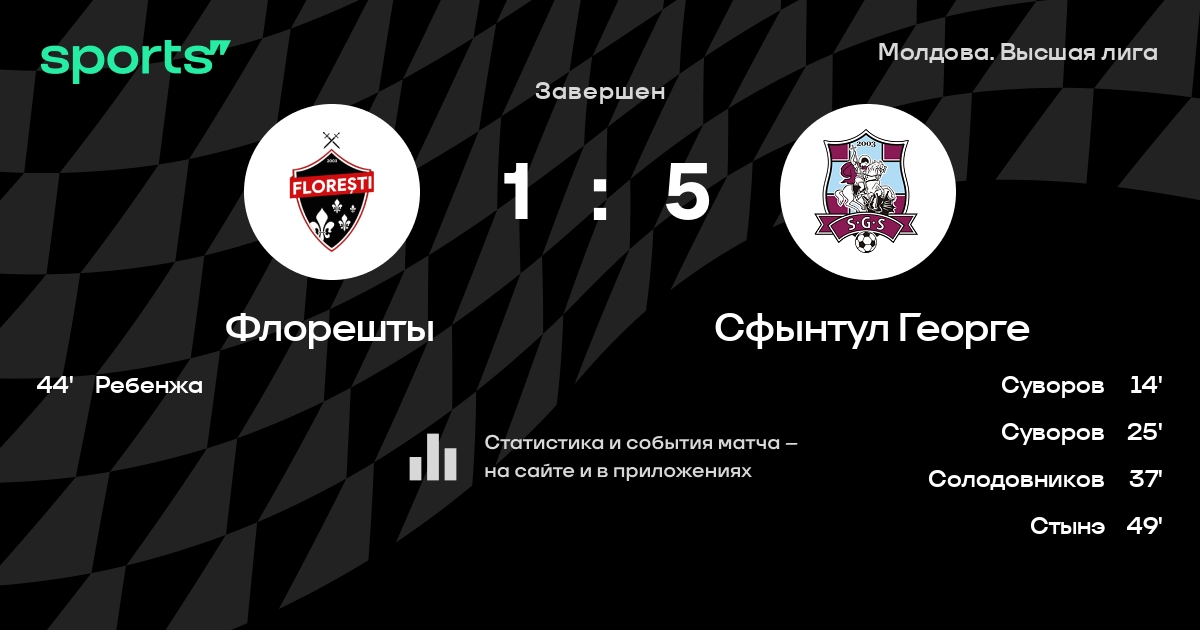 Флорешты – Сфынтул Георге: Сфынтул Георге побеждает в 4 последних очных матчах