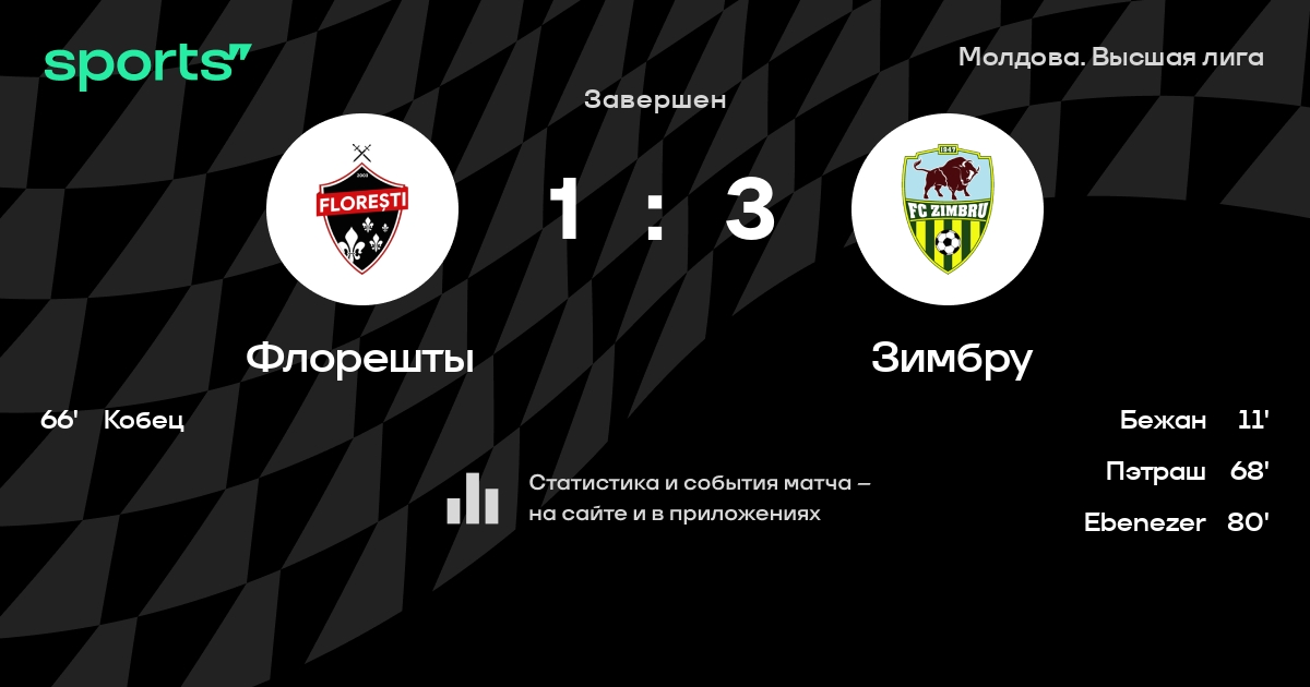 Флорешты – Зимбру: Зимбру забивает в 3 последних матчах против этого соперника