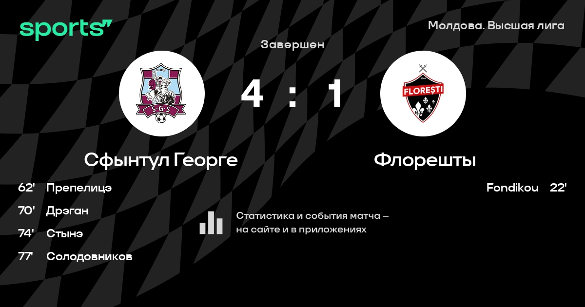 Сфынтул Георге – Флорешты: Сфынтул Георге побеждает в 5 последних очных матчах