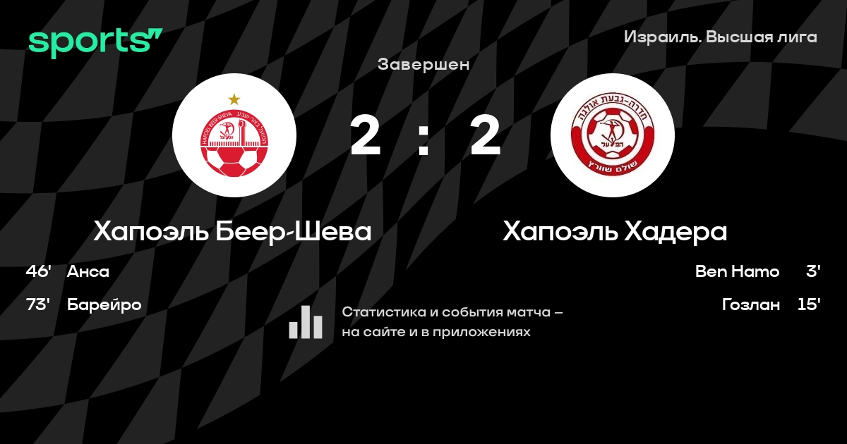 Хапоэль Беер-Шева – Хапоэль Хадера: Хапоэль Беер-Шева забивает в 8 последних матчах против этого соперника