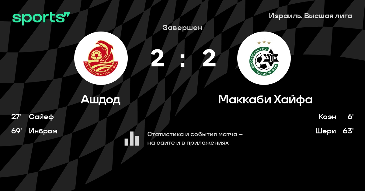 Ашдод – Маккаби Хайфа: Маккаби Хайфа не проигрывает в 7 из 9 последних матчей против этого соперника