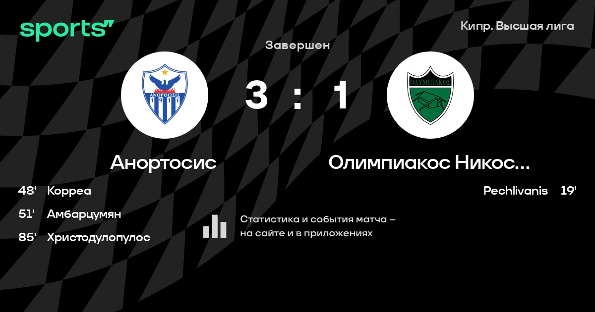 Анортосис – Олимпиакос Никосия: Олимпиакос Никосия побеждает в 3 последних очных матчах в турнире «Кипр. Высшая лига»