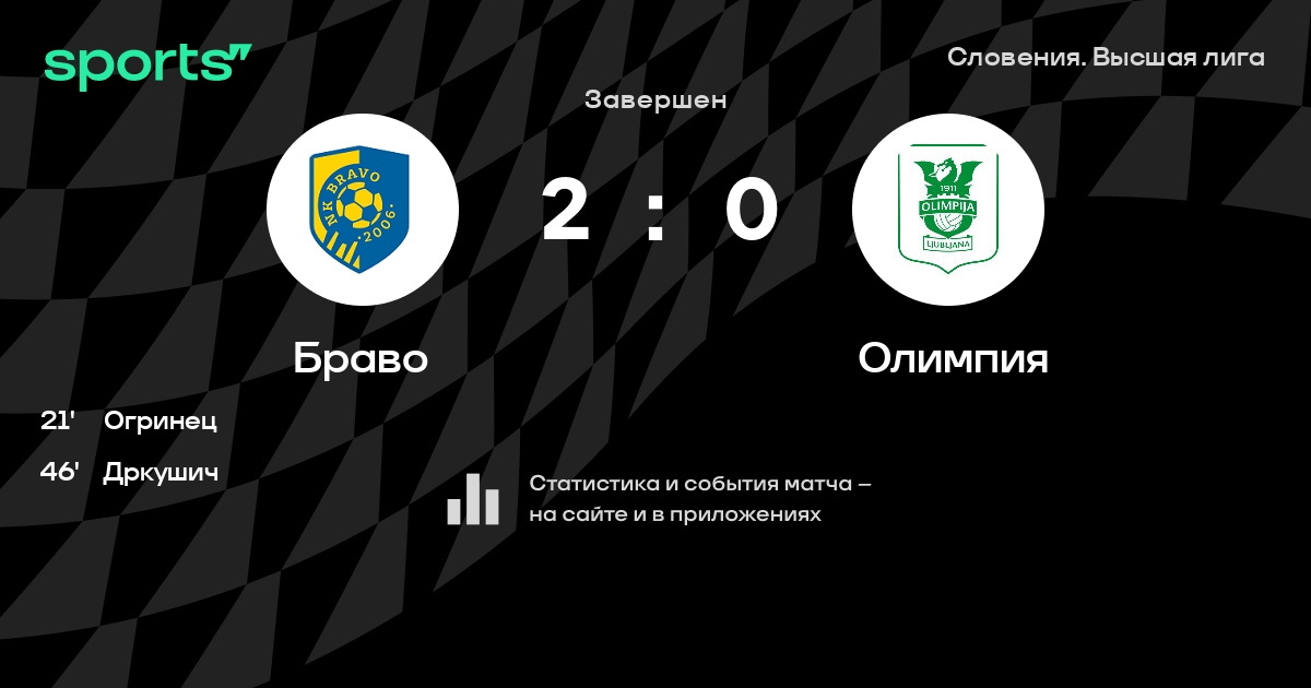 Браво – Олимпия: Браво не проигрывает в 5 последних матчах против этого соперника в турнире «Словения. Высшая лига»