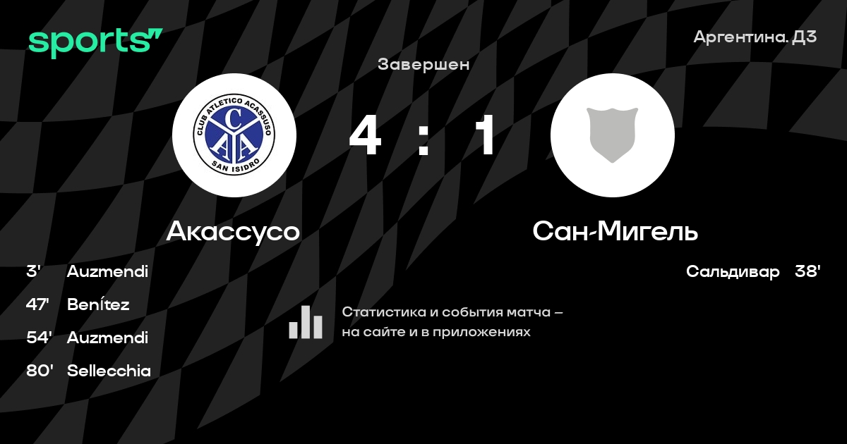 Акассусо – Сан-Мигель: Сан-Мигель не проигрывает в 5 последних матчах против этого соперника
