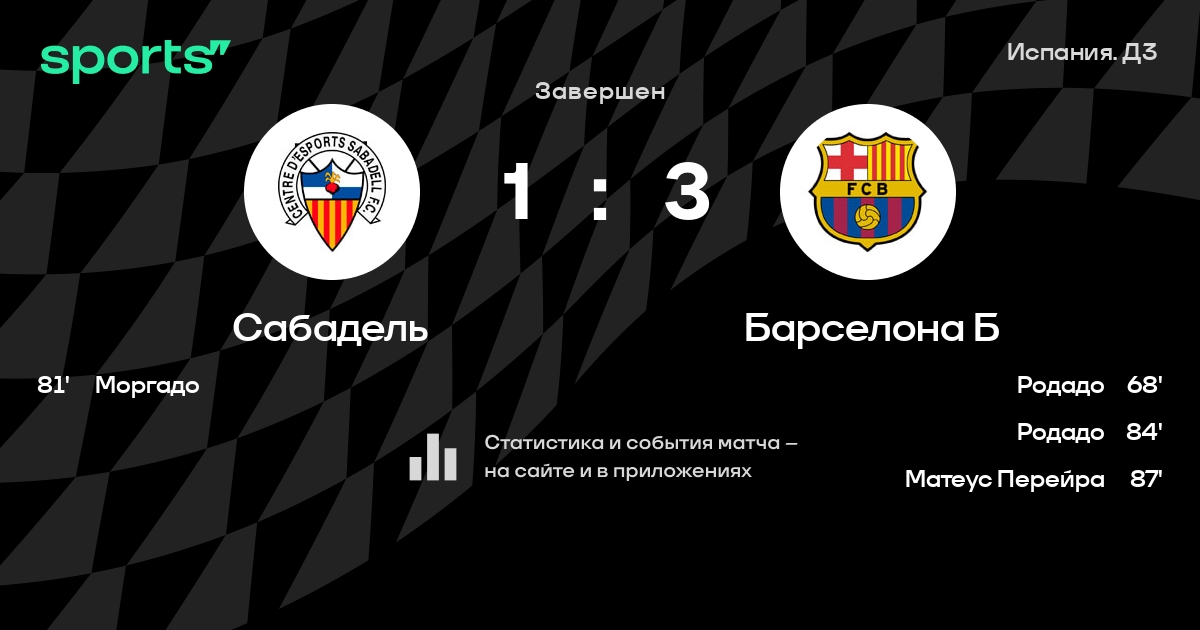 «Барселона Б» - «Сабадель» 1-2 в финальном раунде плей-офф за Сегунду