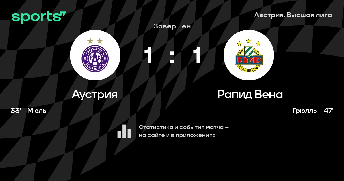 Аустрия – Рапид Вена: Рапид Вена не проигрывает в 9 из 11 последних матчей против этого соперника в гостях в турнире «Австрия. Высшая лига»