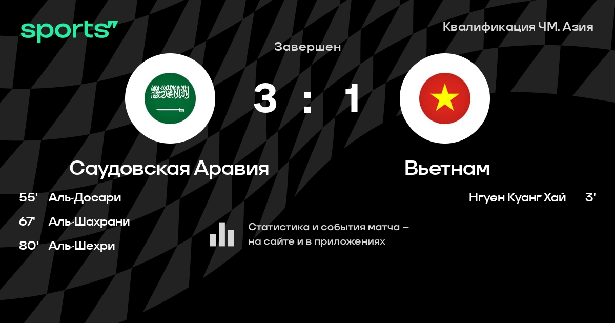 Саудовская Аравия – Вьетнам: Саудовская Аравия побеждает в 3 последних очных матчах в турнире «Квалификация ЧМ. Азия»