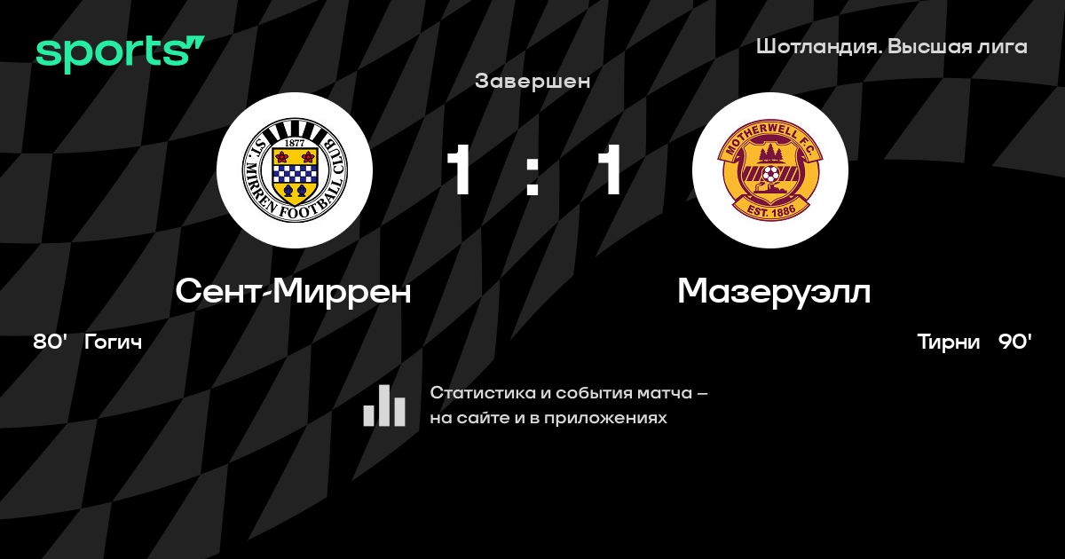 Сент-Миррен – Мазеруэлл: Сент-Миррен не проигрывает в 7 из 9 последних матчей против этого соперника