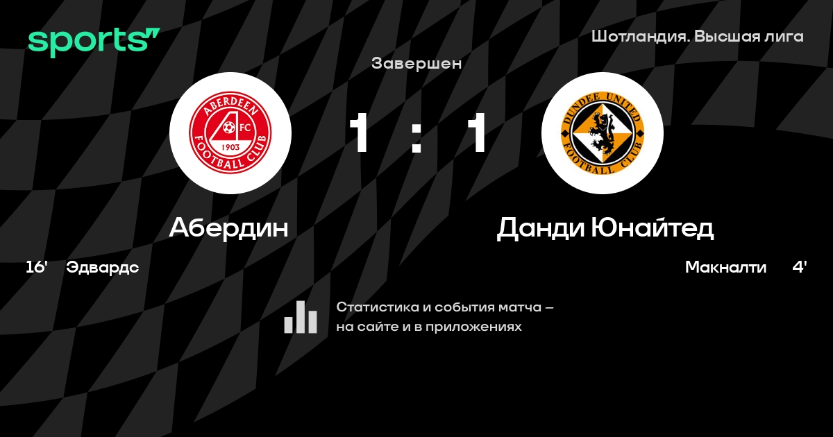 Абердин – Данди Юнайтед: Абердин не проигрывает в 5 из 7 последних матчей против этого соперника дома