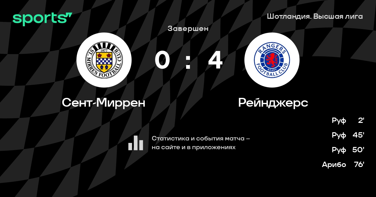 Сент-Миррен – Рейнджерс: Рейнджерс побеждает в 4 последних очных матчах