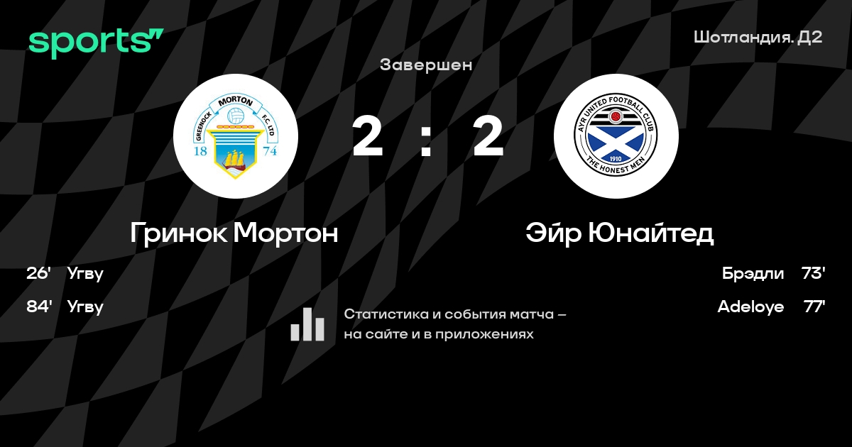 Гринок Мортон – Эйр Юнайтед: Эйр Юнайтед не проигрывает в 5 из 7 последних матчей против этого соперника в гостях в турнире «Шотландия. Чемпионшип»