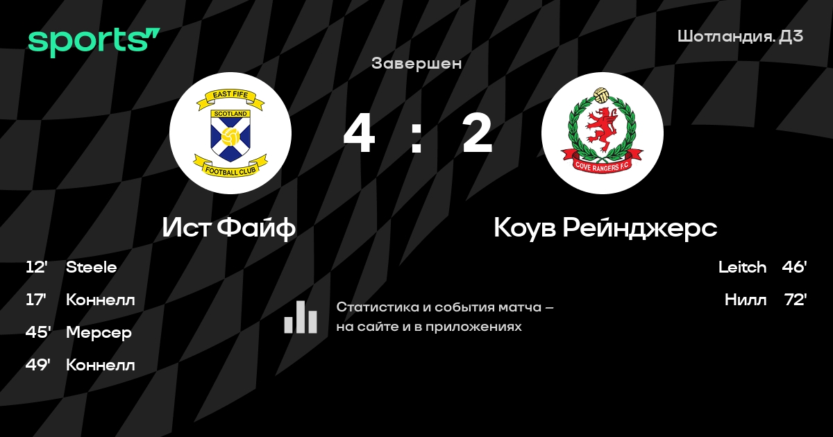 Smith - Dunlop, Хиггинс, Steele - Слэттери, Newton, Макманус, Уотт, Мерсер - Коннелл, WallaceЗапасные: Галлахер, Хиггинс, Denholm, Osei-Bonsu, Brown, Семпл, Smith