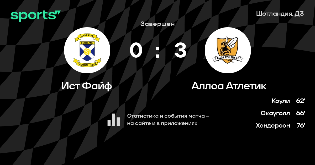 Ист Файф – Аллоа Атлетик: Ист Файф забивает в 7 последних матчах против этого соперника
