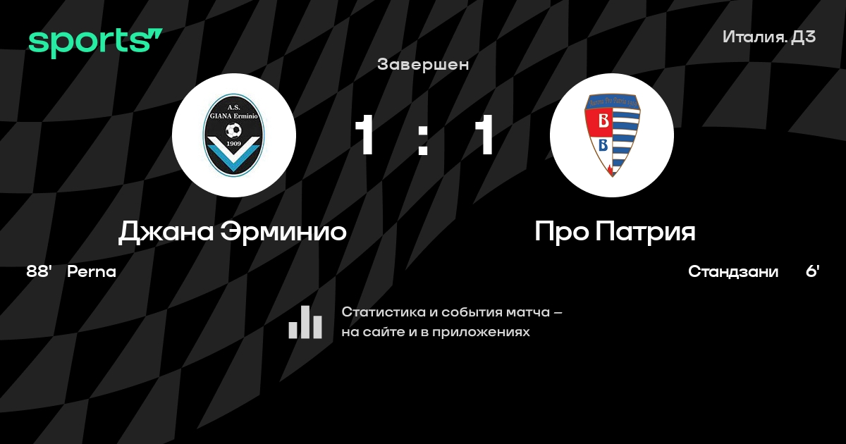 Джана Эрминио – Про Патрия: Про Патрия забивает в 3 последних матчах против этого соперника