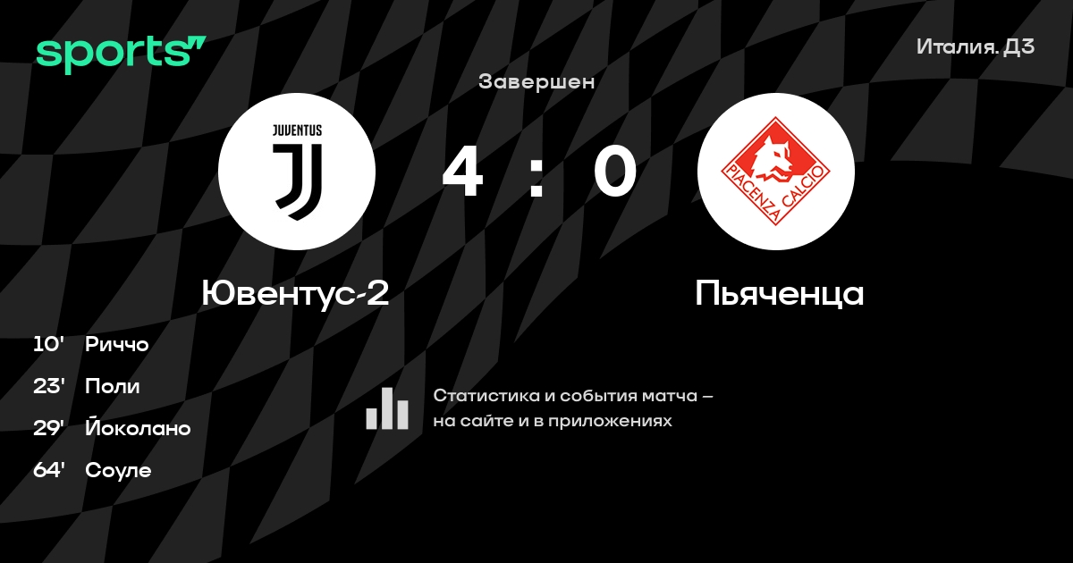 Ювентус-2 – Пьяченца: Пьяченца забивает в 6 последних матчах против этого соперника
