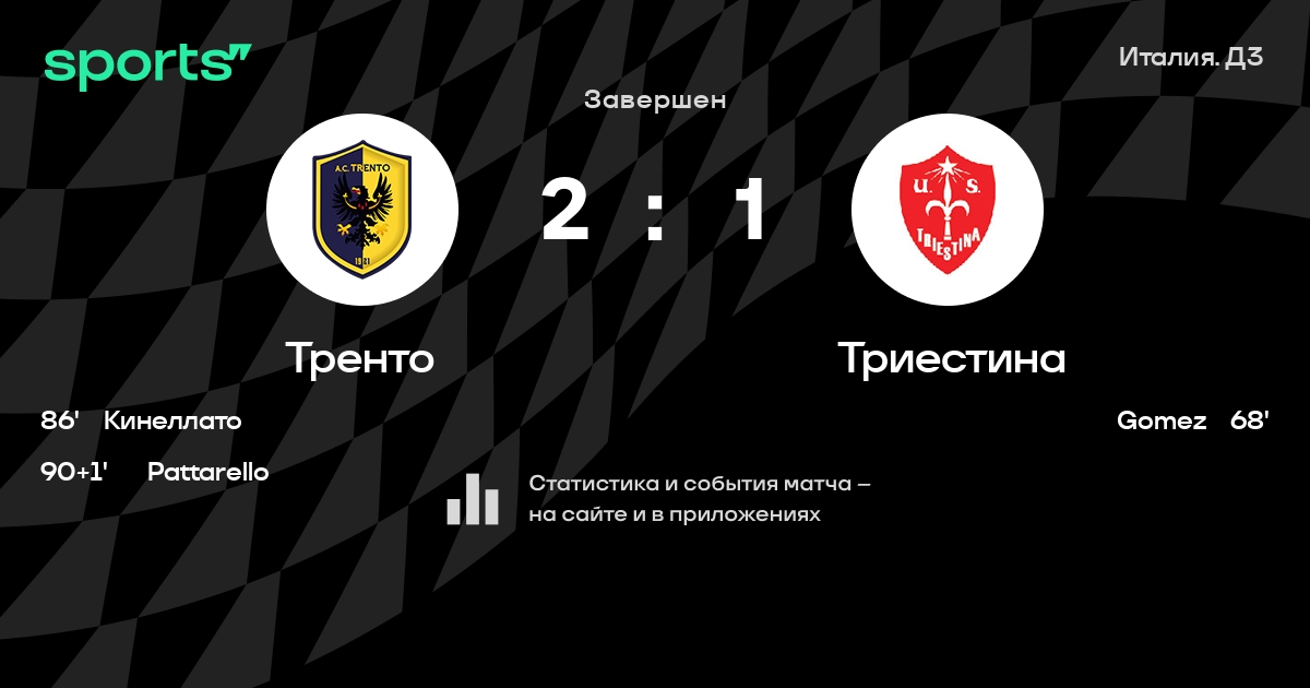 Тренто не выигрывает в 6 последних матчах
