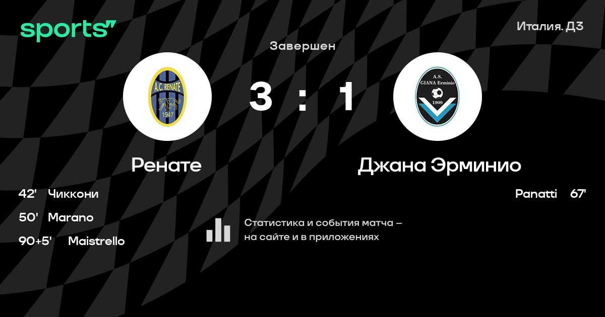 Ренате – Джана Эрминио: Ренате не проигрывает в 6 из 7 последних матчей против этого соперника дома