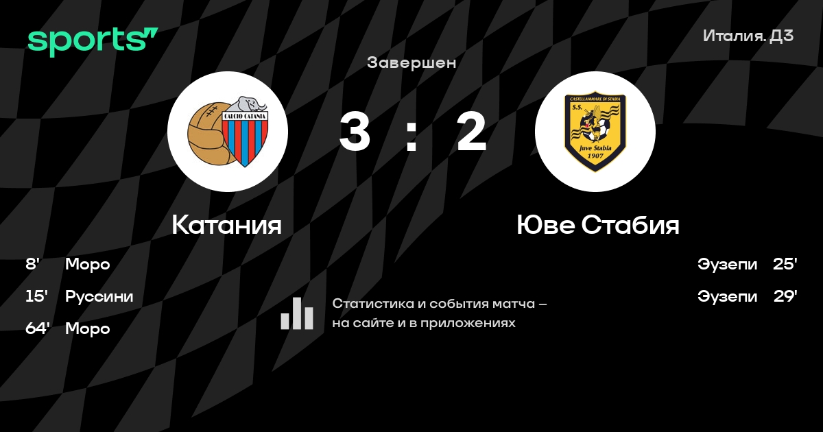 Катания – Юве Стабия: Катания не пропускает в 0 из 8 последних матчей против этого соперника