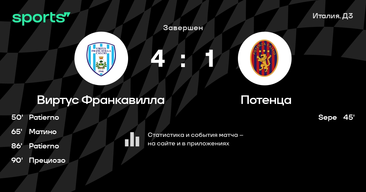 Потенца проигрывает в 7 последних матчах в гостях в турнире «Италия. Д3»