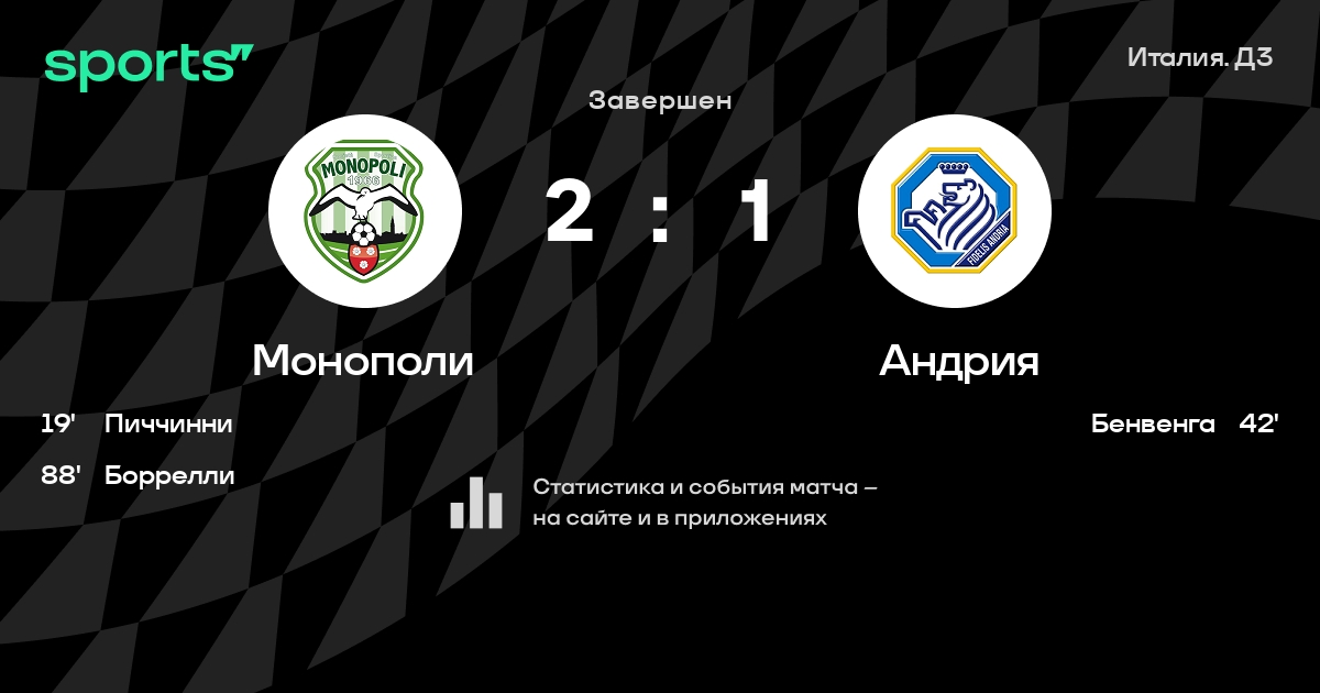 Монополи – Андрия: Монополи забивает в 6 последних матчах против этого соперника