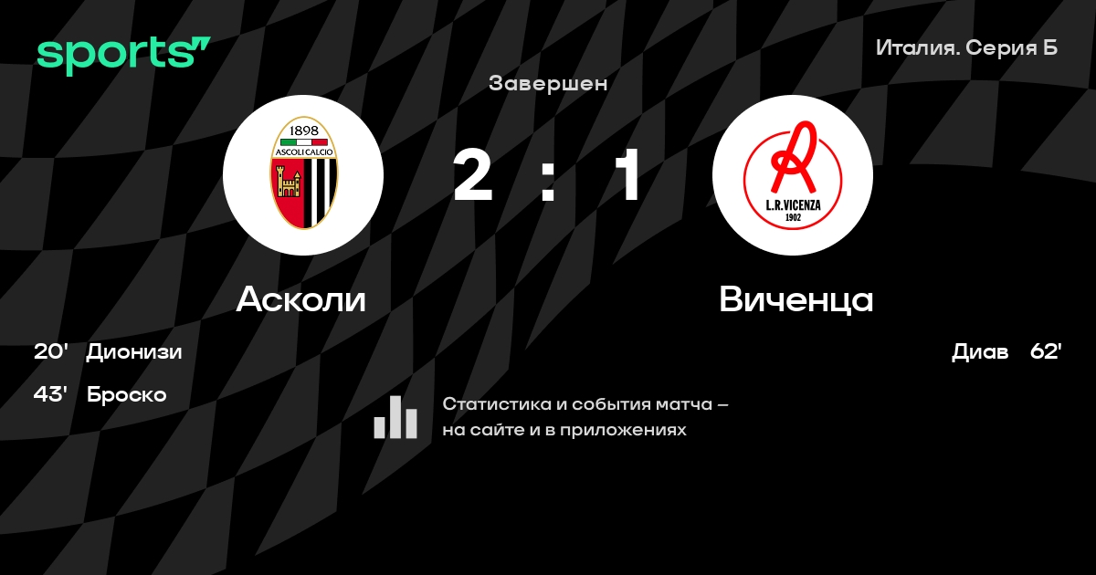 Асколи – Виченца: Виченца забивает в 3 последних матчах против этого соперника