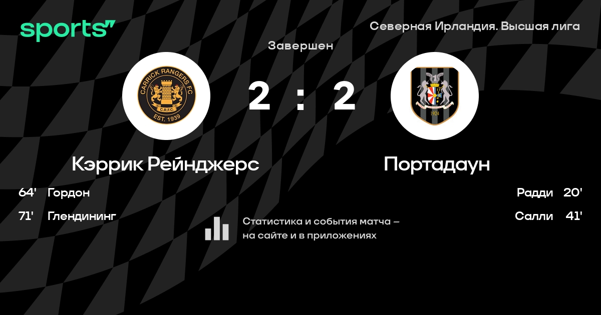 Кэррик Рейнджерс – Портадаун: коэффициенты