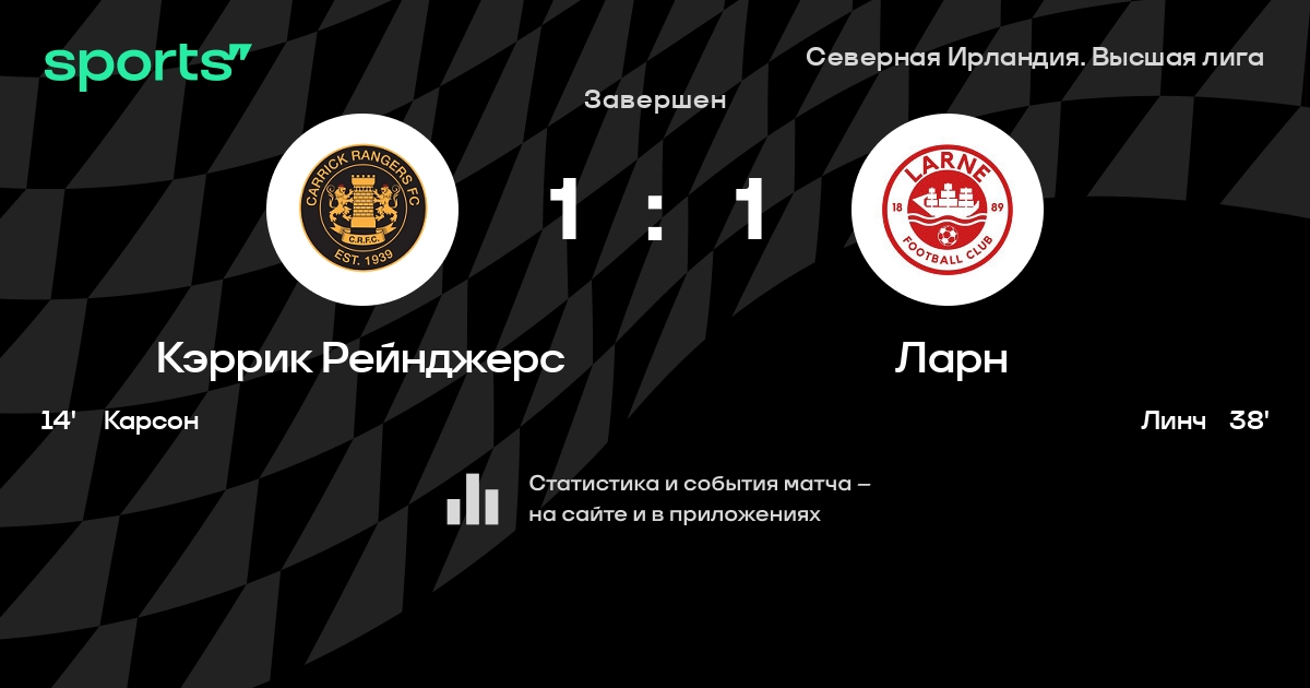 Кэррик Рейнджерс – Ларн: Ларн не проигрывает в 9 последних матчах против этого соперника
