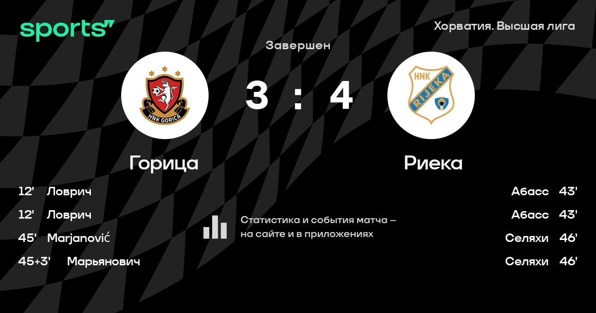 Горица – Риека: Риека забивает в 3 последних матчах против этого соперника