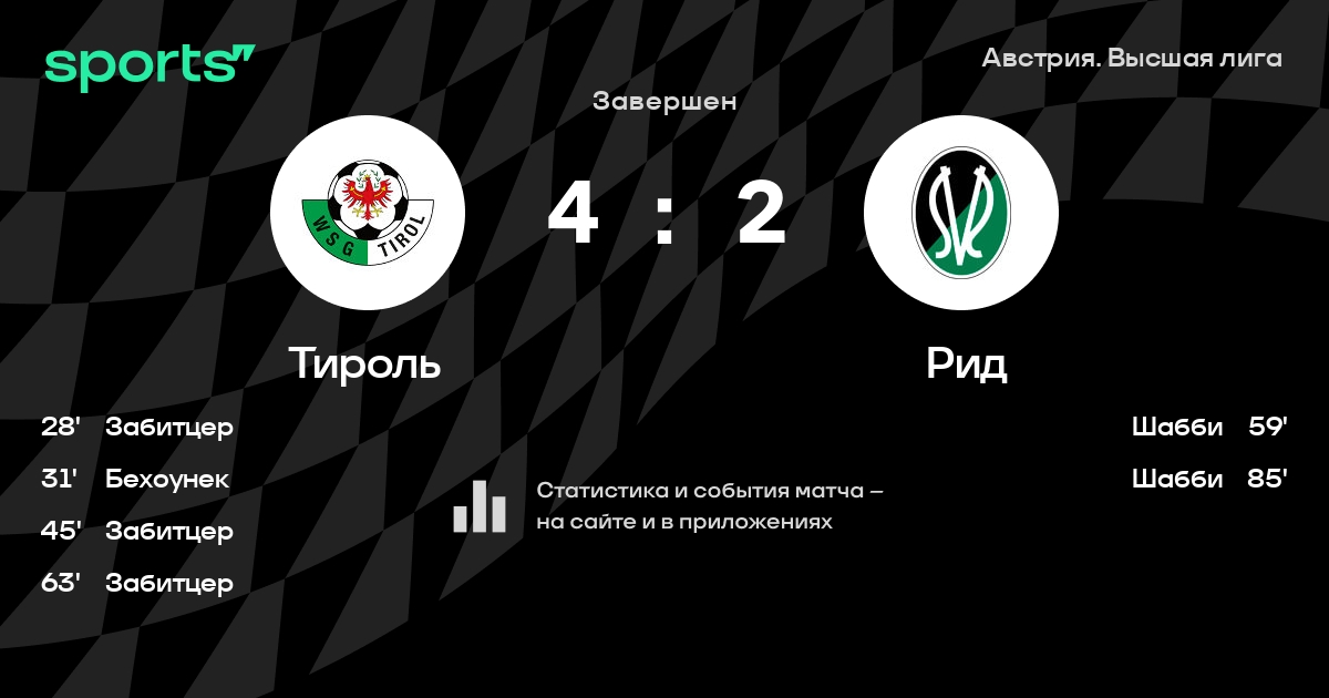 Тироль – Рид: Рид побеждает в 5 последних очных матчах