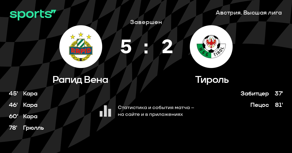 Рапид Вена – Тироль: Рапид Вена не проигрывает в 5 из 6 последних матчей против этого соперника