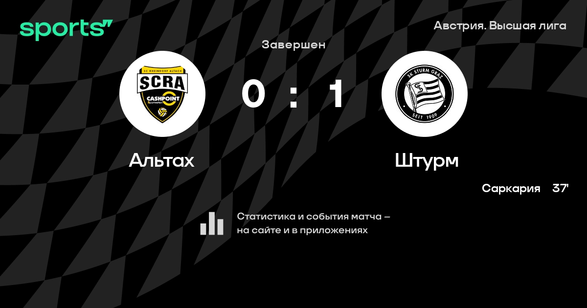 Альтах – Штурм: Штурм не проигрывает в 8 из 10 последних матчей против этого соперника в гостях в турнире «Австрия. Высшая лига»