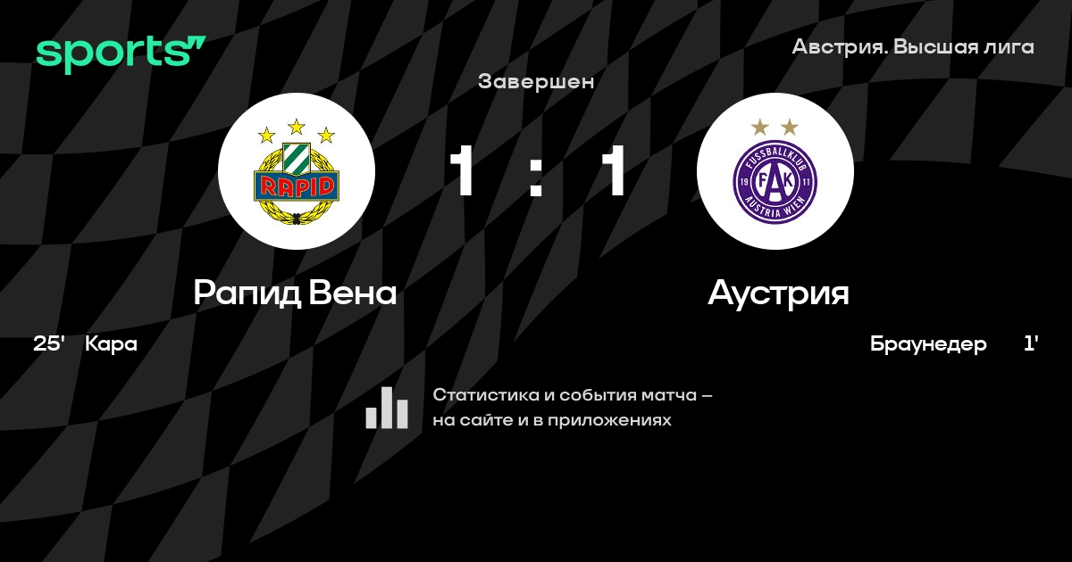 Рапид Вена не проигрывает в 6 из 8 последних матчей в турнире «Австрия. Высшая лига»