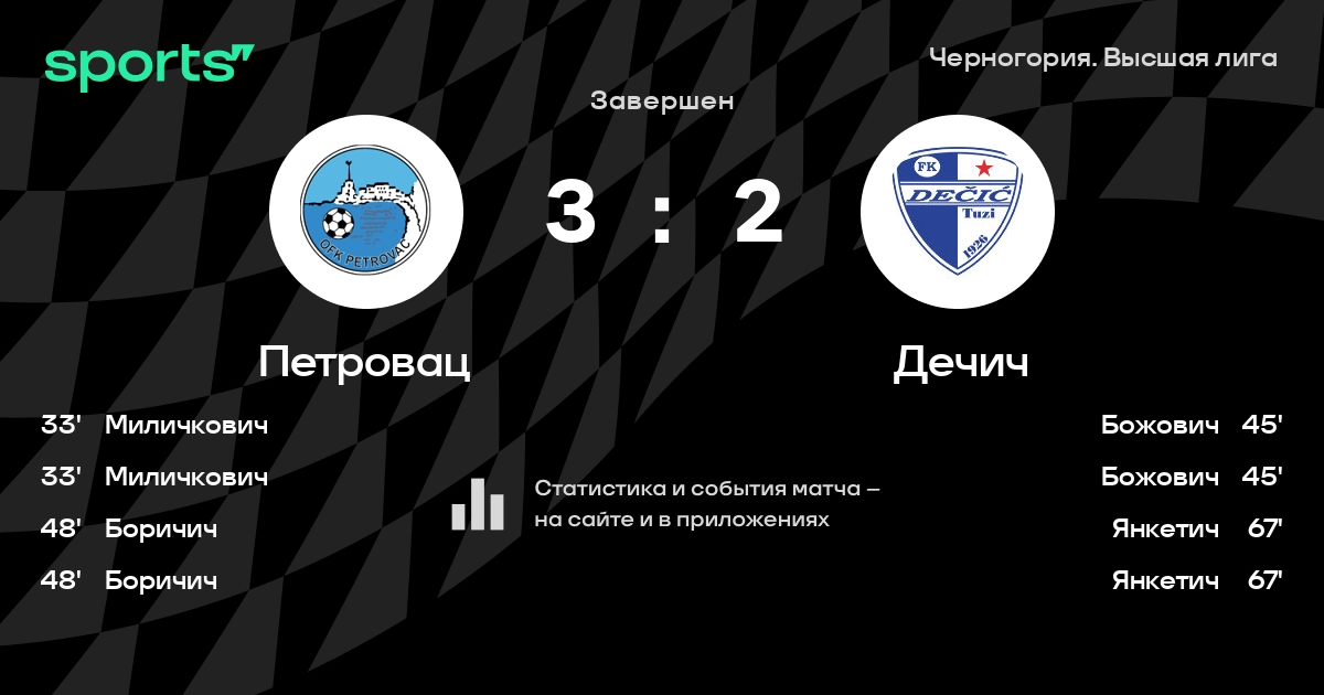 Петровац – Дечич: Дечич не проигрывает в 5 последних матчах против этого соперника