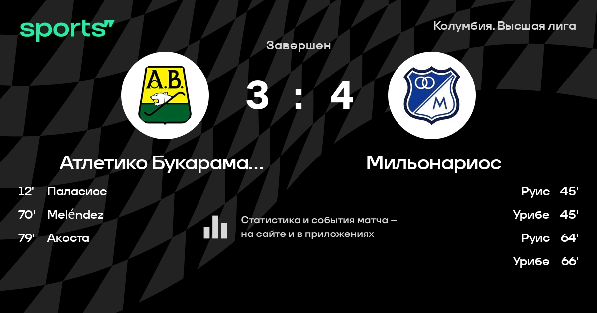 Атлетико Букараманга – Мильонариос: Мильонариос не проигрывает в 12 из 14 последних матчей против этого соперника