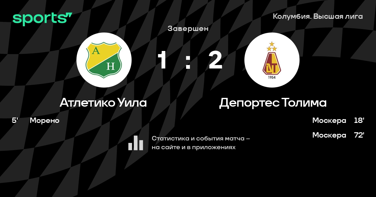 Атлетико Уила – Депортес Толима: Депортес Толима не пропускает в 2 из 7 последних матчей против этого соперника