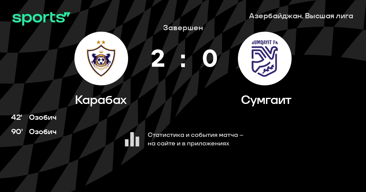Карабах – Сумгаит: Карабах не проигрывает в 6 из 8 последних матчей против этого соперника
