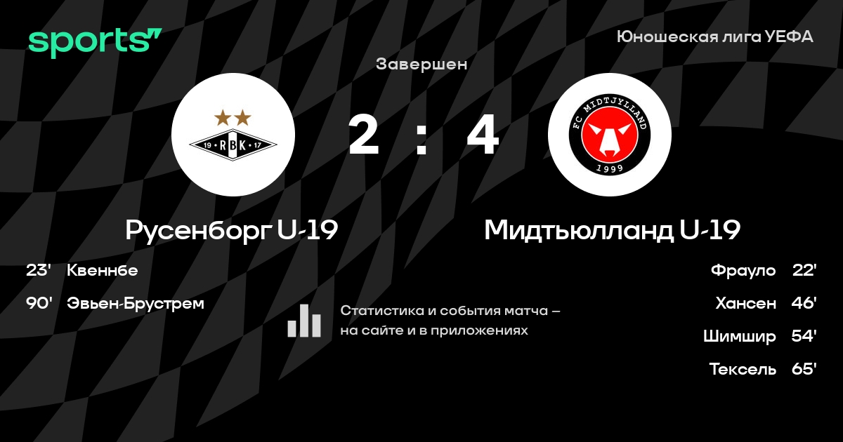 Трансляция Русенборг U-19 - Мидтьюлланд U-19