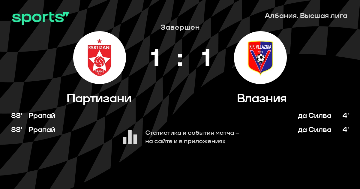 Партизани – Влазния: Влазния не проигрывает в 5 из 7 последних матчей против этого соперника